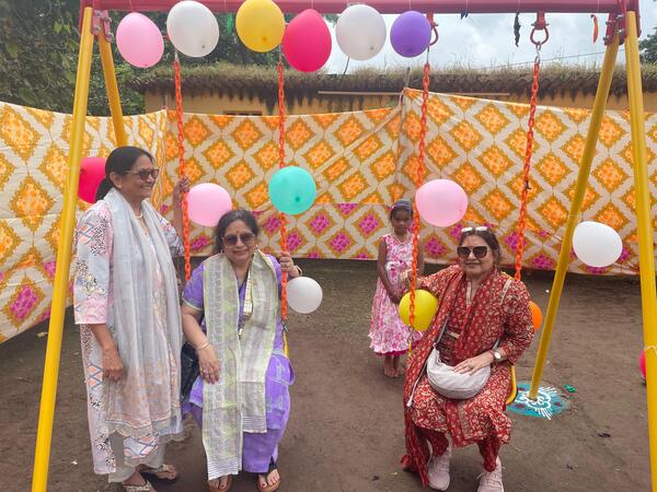 1. *We Inaugurated the playground equipment for the local children.* Our hearts filled with joy as we saw hoards of children eagerly dashing to try the new playground equipment right after the inauguration.