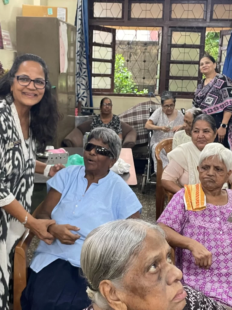 As part of our many *outreach programs,* spending time with those who have been left in old age homes—when they deserve to be surrounded by their families—is one of the most meaningful gestures we can offer.